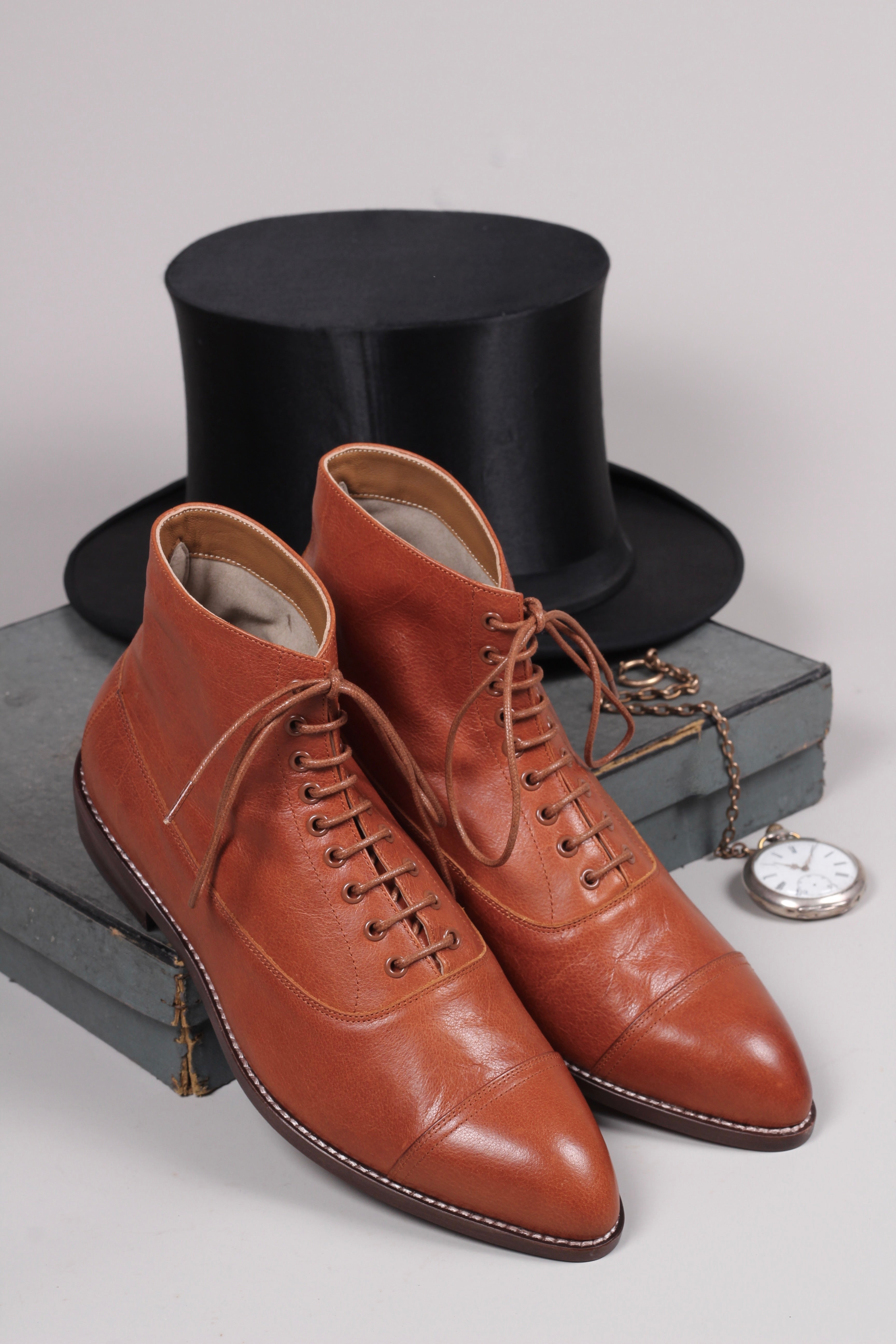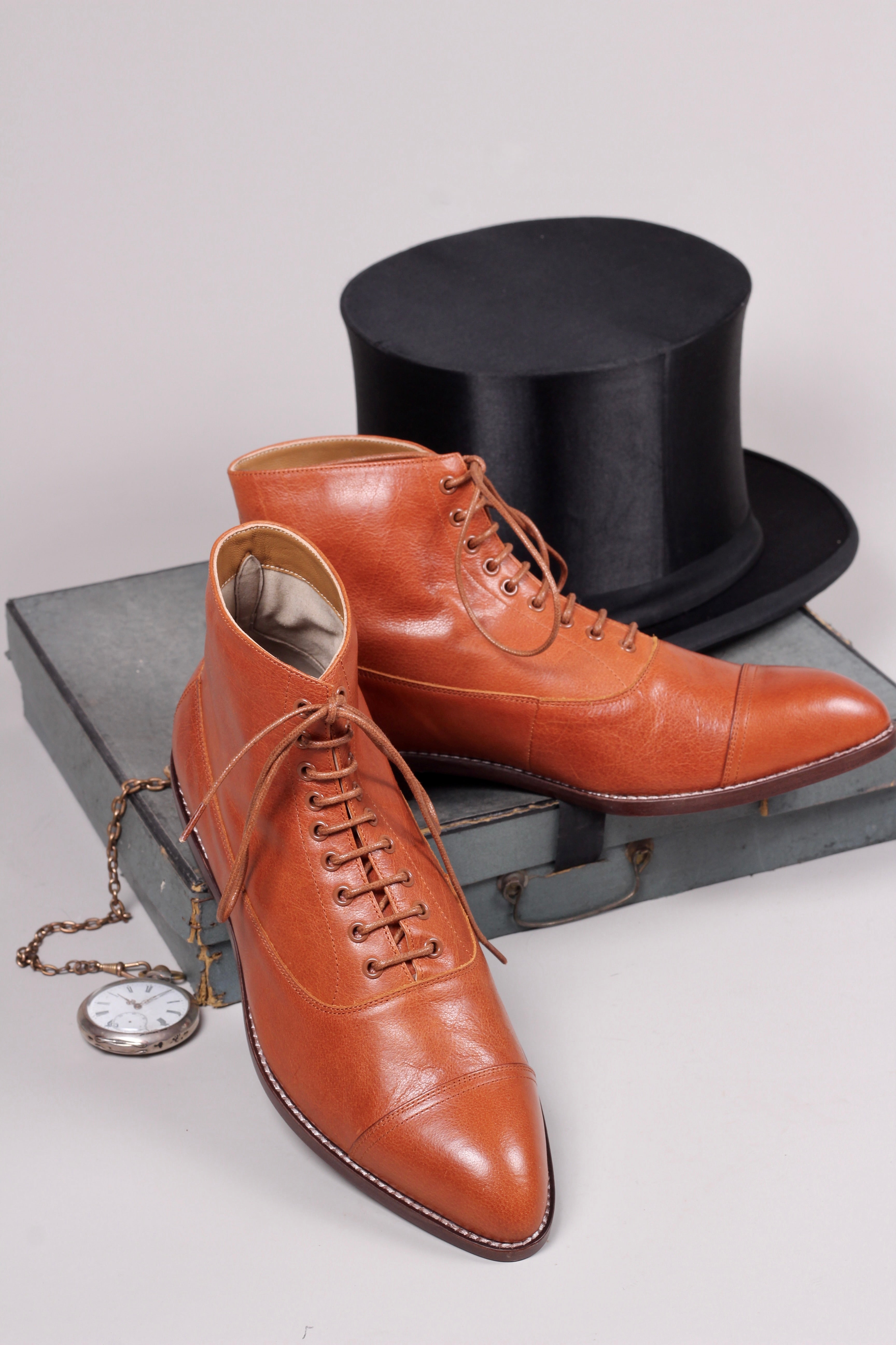 Men's Edwardian 10s / 20s style ankle leather boot - Cognac brown - William
