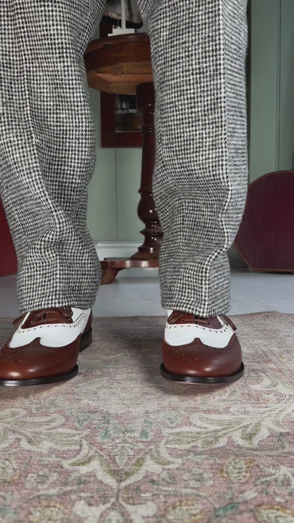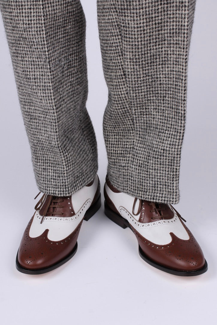 Elegant two-tone 1930s-style full-brogue Oxford shoes