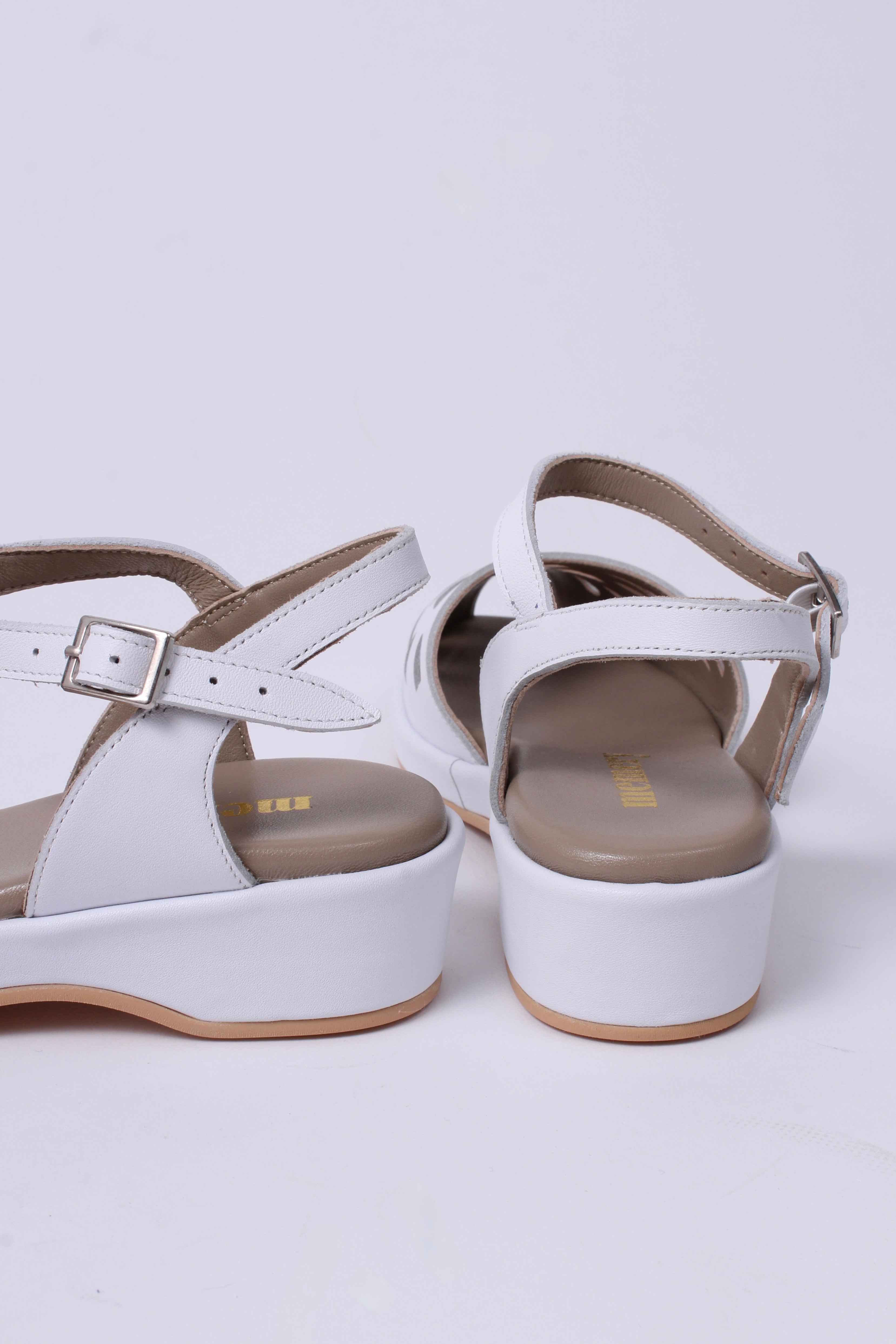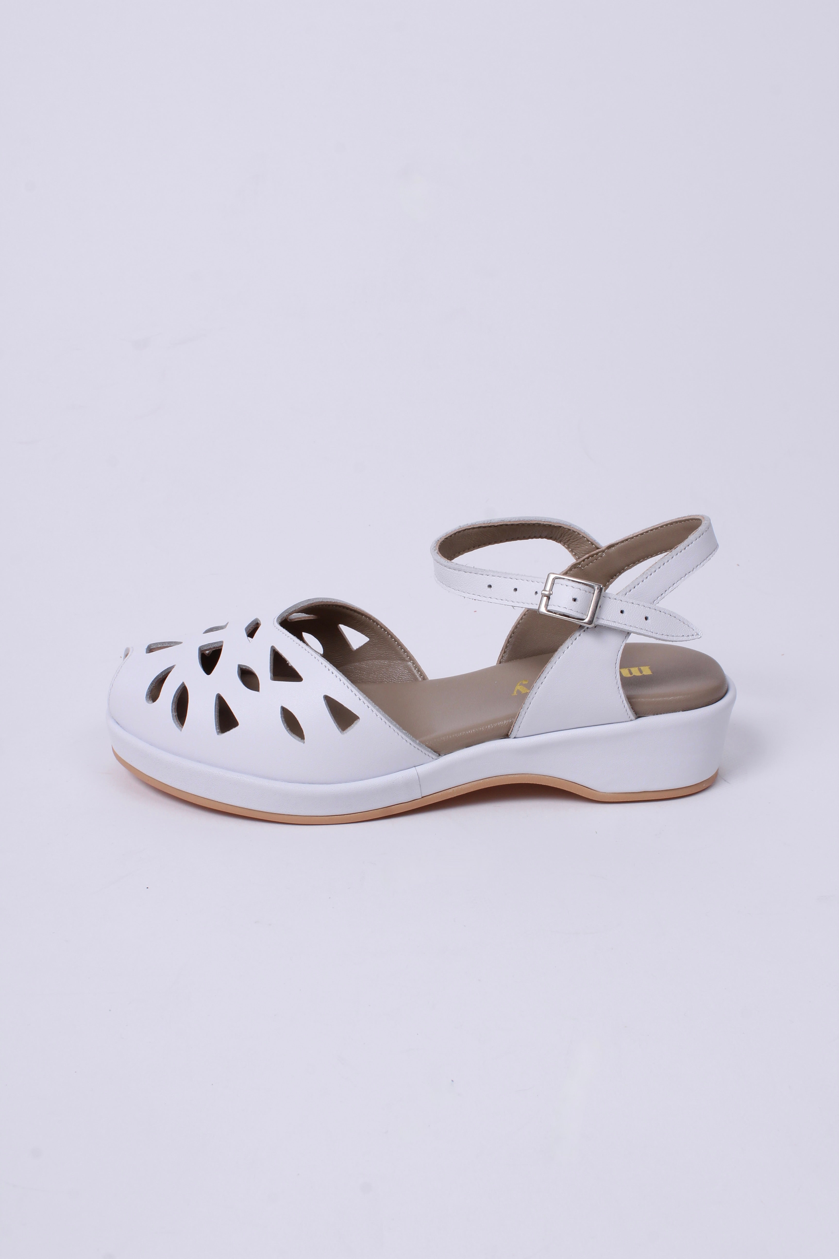 Classic summer wedges inspired by the late 1940s and early 1950s. Crafted from full-grain leather, these sandals feature an elegant cutout pattern that enhances their feminine appeal. With peep toes and a secure, adjustable ankle strap, closed with a metal buckle, they offer both style and comfort. The soft silicone inserts beneath the leather sole ensure a cushioned fit, making these shoes perfect for all-day wear.