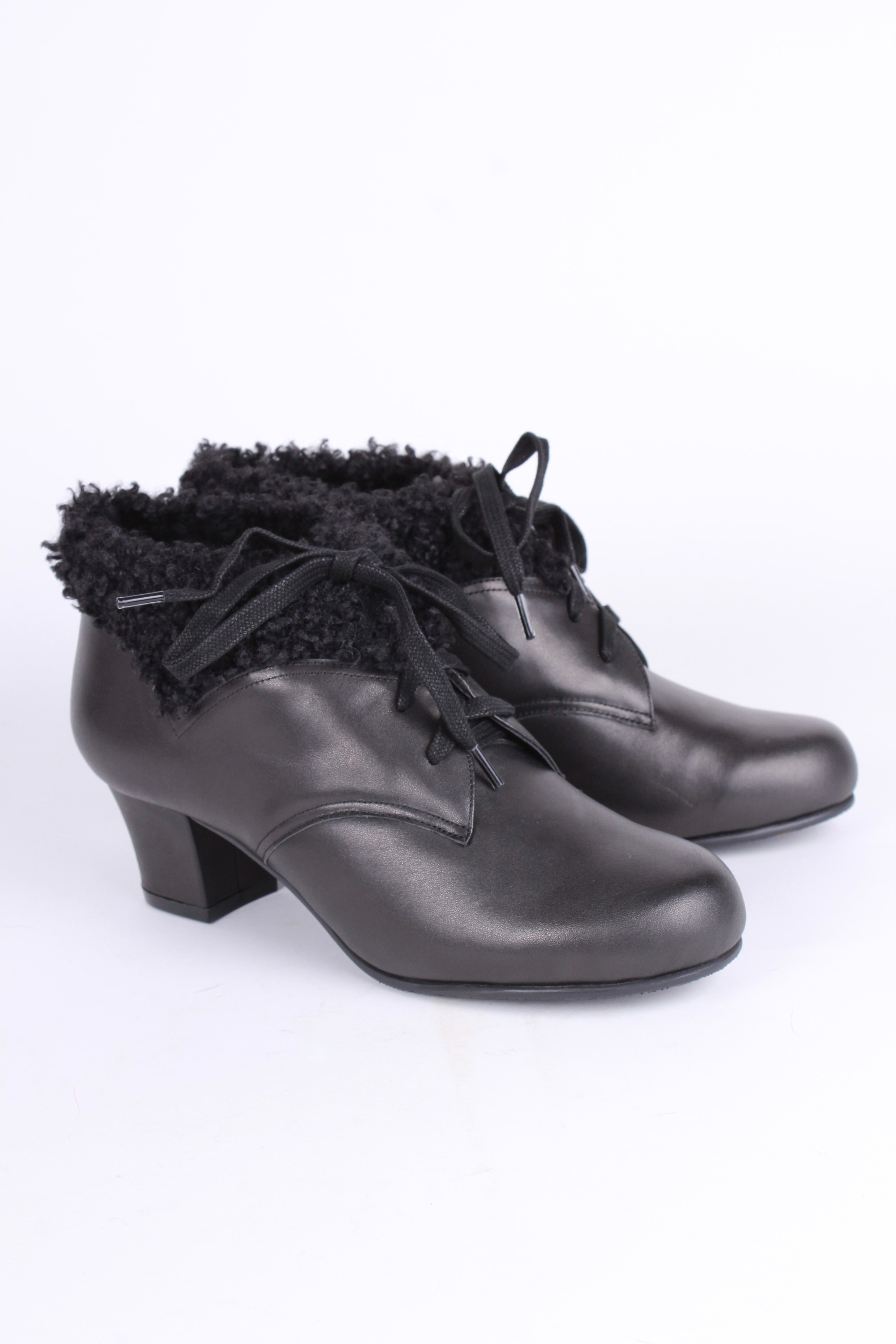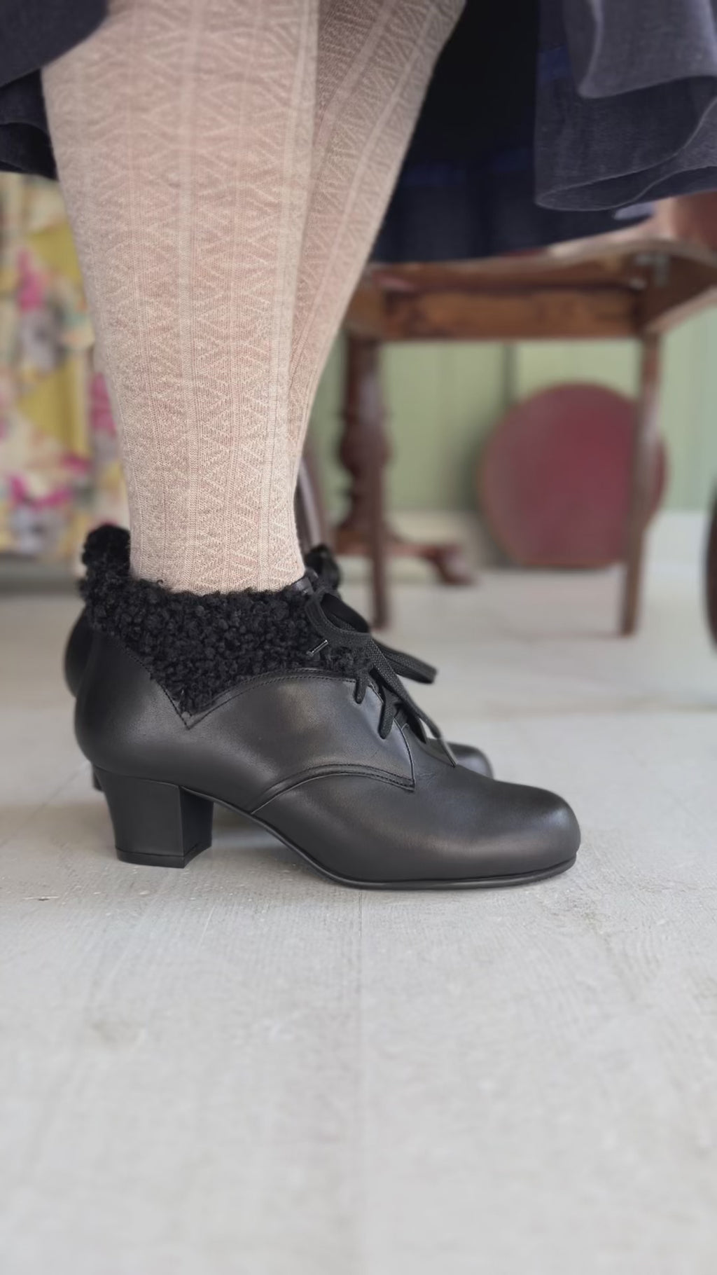 Soft 1940s /1950s booties with wool shearling - black - Karin