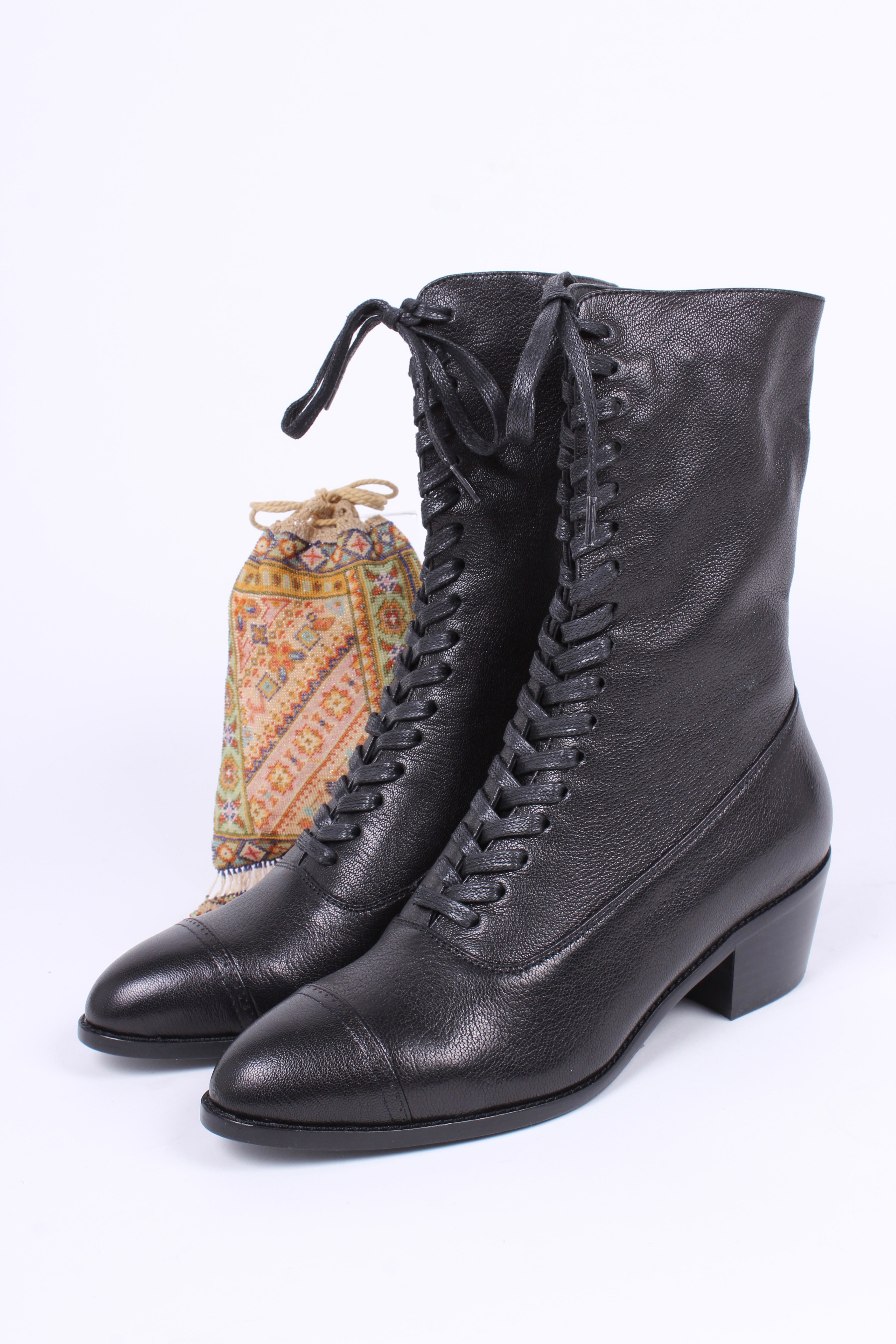 An elegant Edwardian-style everyday is walking lace-up boot.