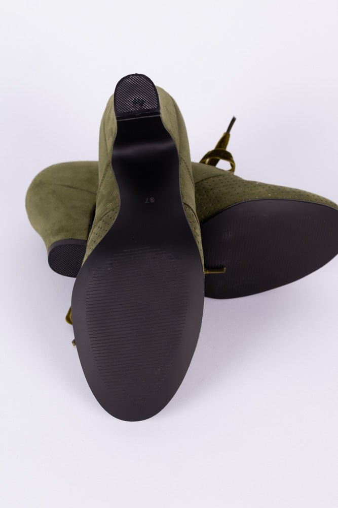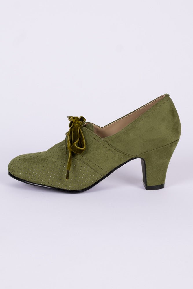 VEGAN shoes - 1940s vintage style pumps with shoe lace - Green - Esther