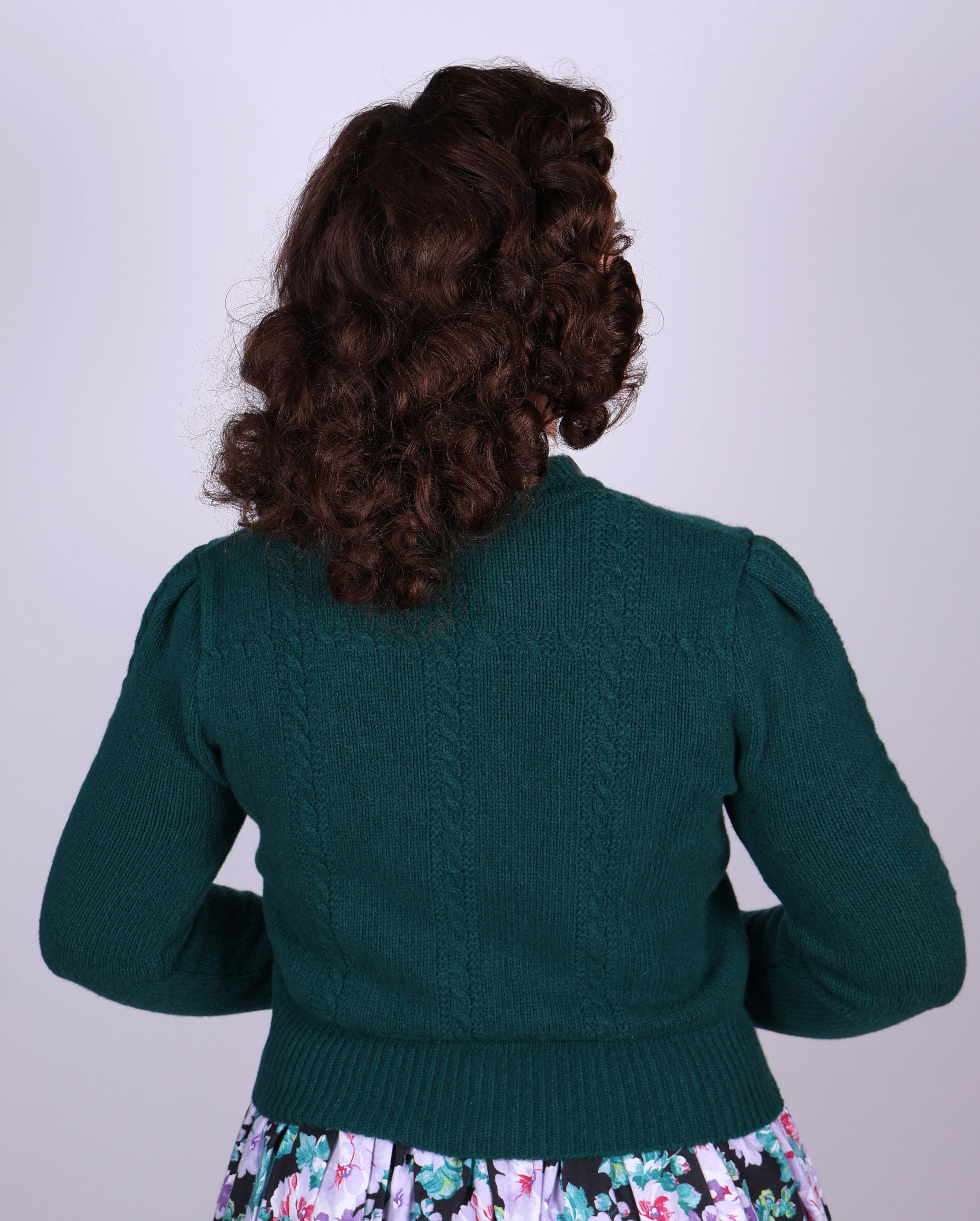 Cute and feminine cable knit 1940s cardigan - Merino - Emerald green - Astrid