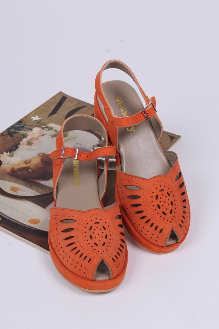 Keilsandalen aus Wildleder im 40er/50er-Jahre-Stil - Aprikose - Ella