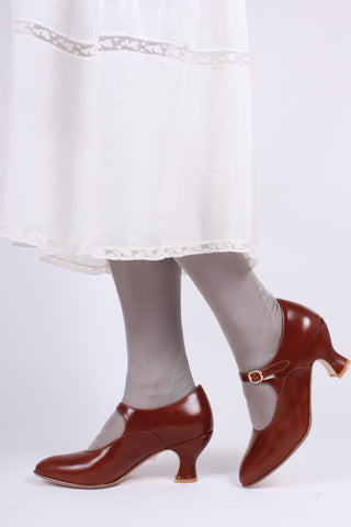 Mary Jane Pumps im Stil der 1920er Jahre – Cognacbraun – Yvonne