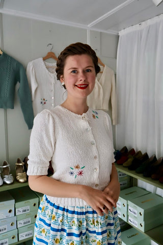Seit meiner Jugend hege ich eine tiefe Liebe zu originaler Vintage-Kleidung. Diese Leidenschaft führte dazu, dass ich sowohl den Online-Shop Memery als auch das Ladengeschäft Vintage Divine/Memery in Aarhus gründete. Wir bieten eine wunderschöne Kollektion originaler Vintage-Kleider und -Kleidung aus den Jahren 1920 bis 1970 sowie unsere einzigartigen Memery-Schuhe.