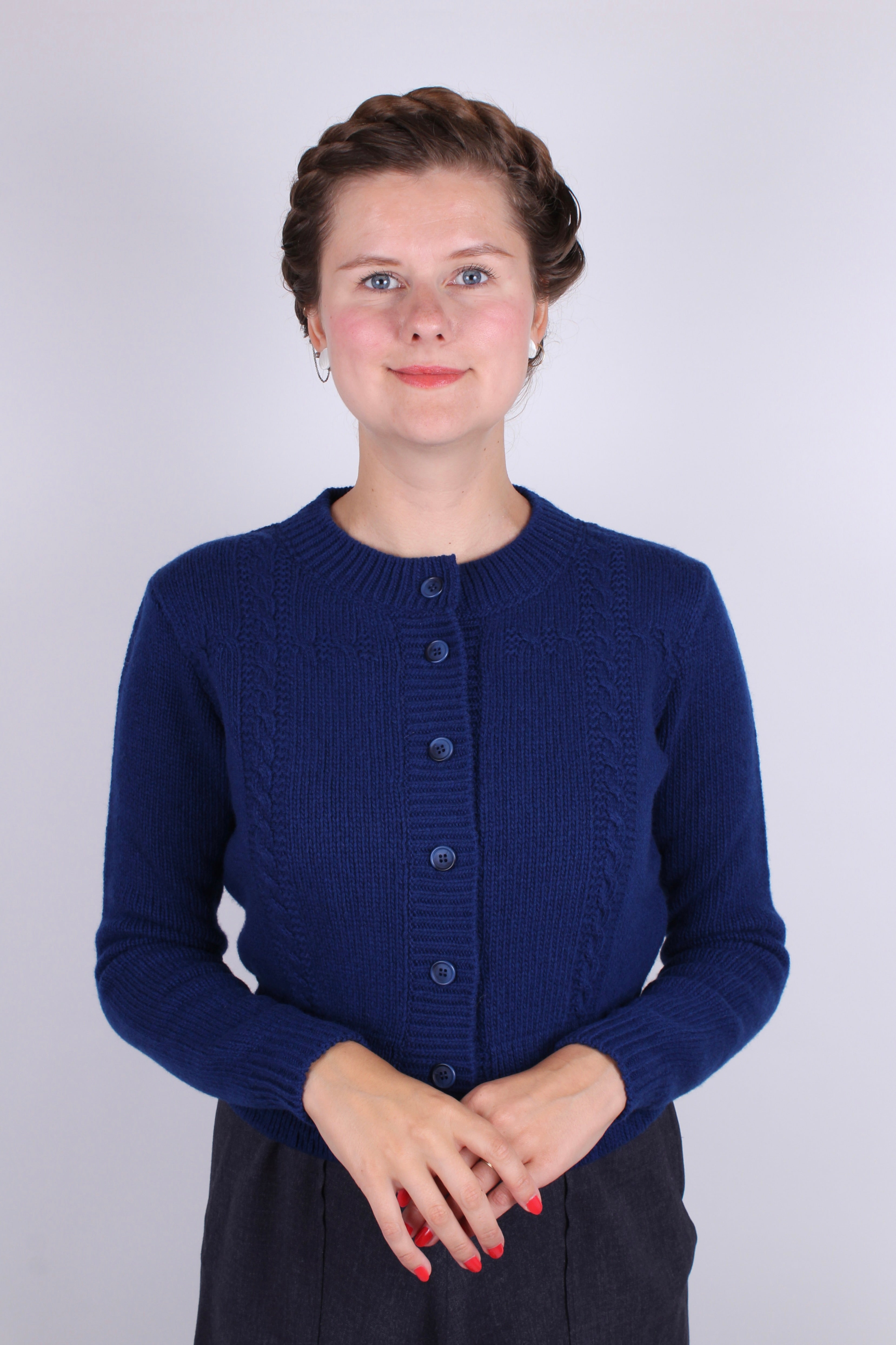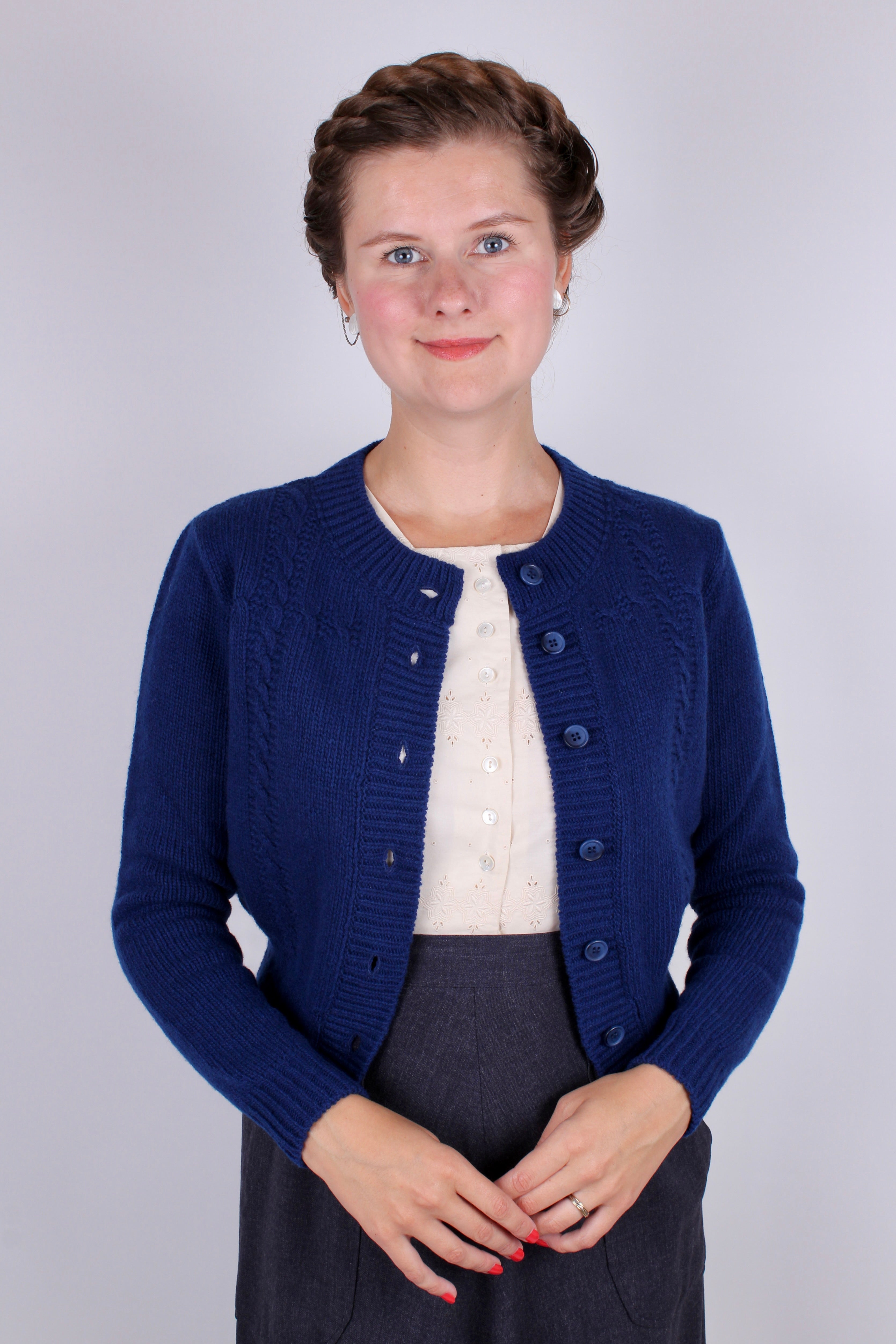 This cardigan is incredibly soft, I didn't know that merino could be so soft! The cut is very feminine and elegant, easy to wear with jeans, and dresses or skirts too. I've ordered the wrong size, and the right size was not available, but the client service had quickly given me an other option. I think I will order again this cardigan in an other colour, like the brown one. I recommend 1000 times Memey shop to all women who love high quality and vintage inspired clothes.
