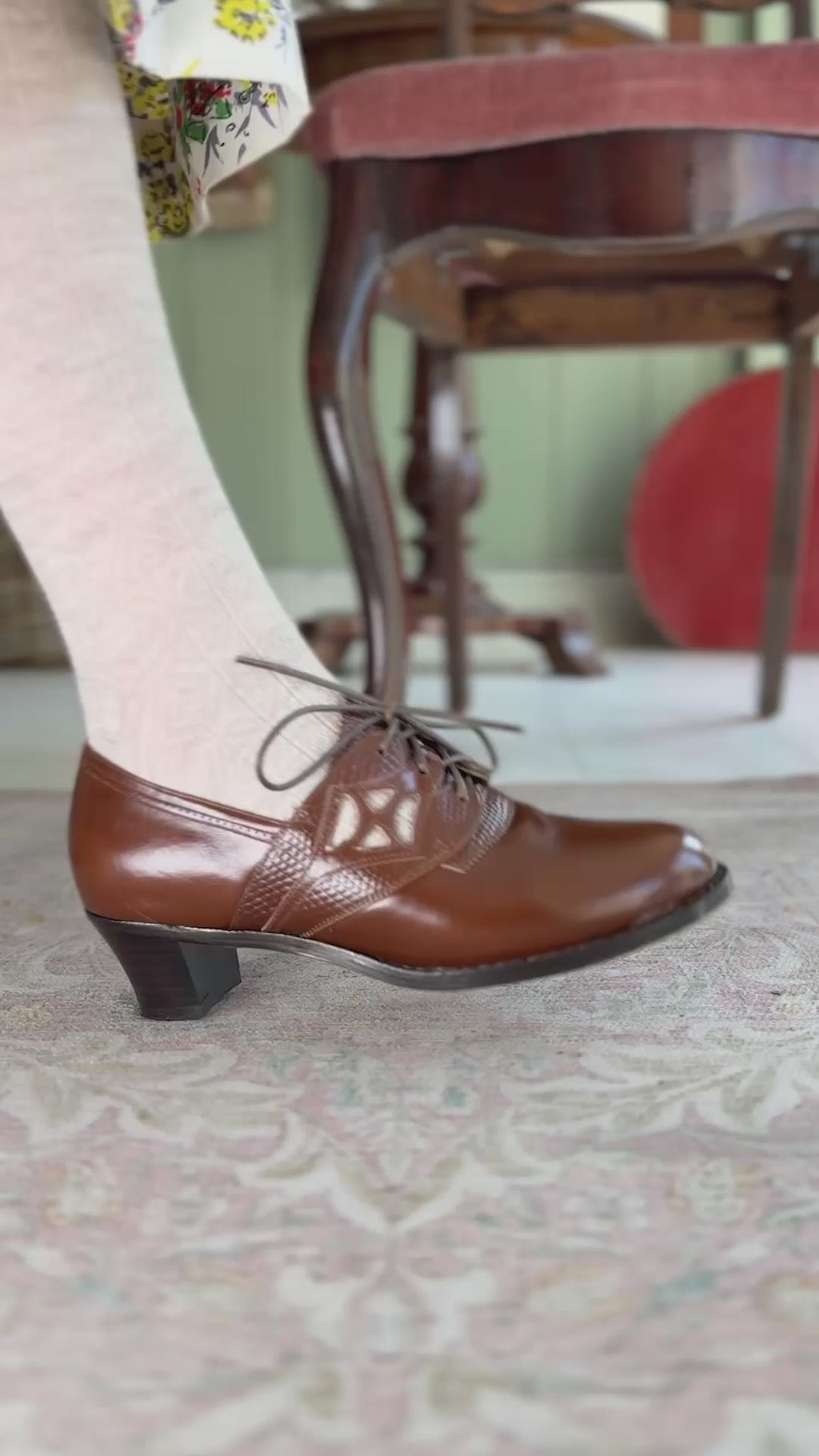 Early 1940s everyday lace-up shoes - Nougat Brown - Emily
